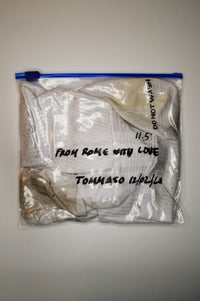 Words that move between instruction and symbol, transforming a simple garment into a coded gesture.